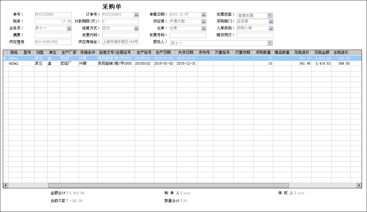 图片信息2、支持日常业务录入商品信息的自动加载。要求采购环节进行生产批号、生产日期、失效日期、序列号等信息的录入,从而实现销售环节自动加载批次信息。